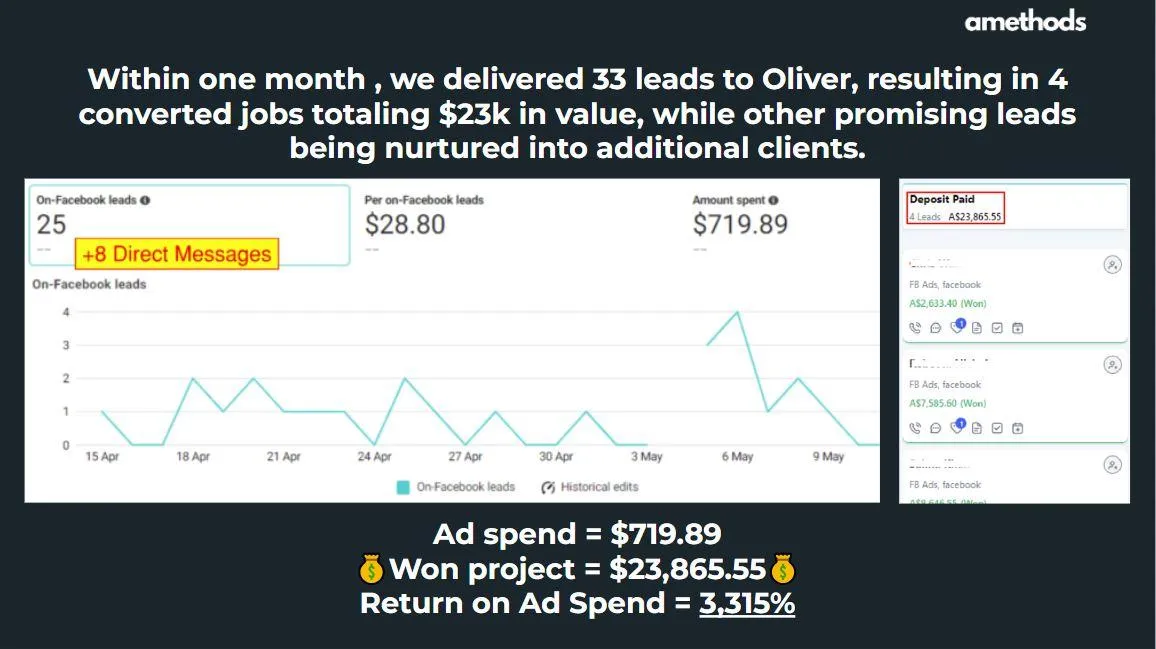 With a background in the contracting world, I understand the frustration of businesses that are great at their craft but struggle with marketing. I built Amethods to provide a no-nonsense, results-focused system that delivers what business owners truly need: a predictable stream of high-quality clients.