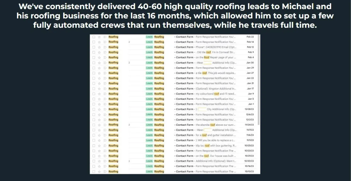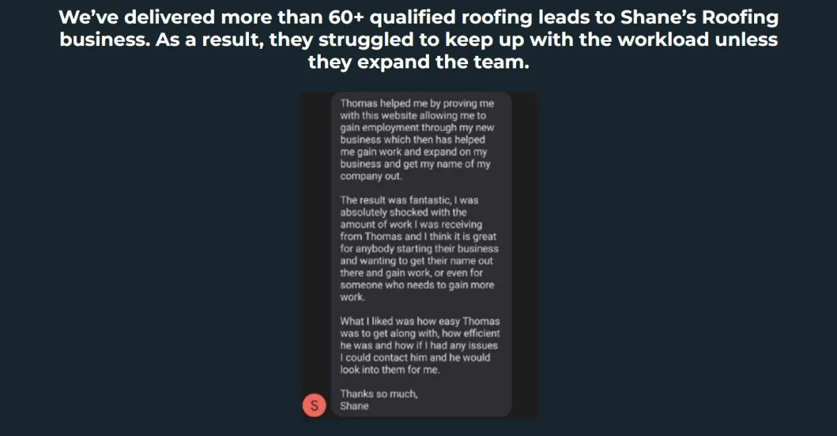 60+ Roofing Leads Every Month — Client’s Glowing Review Says It All.